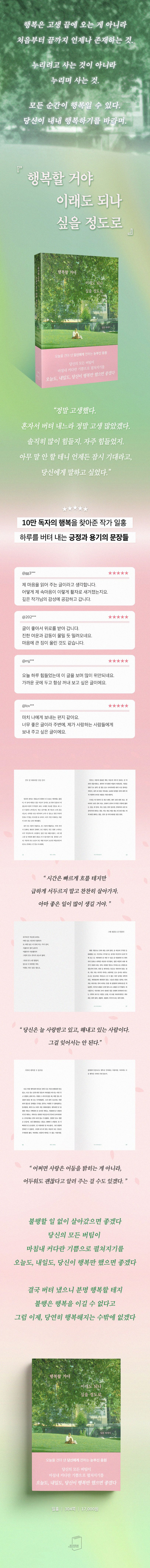 『행복할 거야, 이래도 되나 싶을 정도로』는 바쁘게 흘러가는 하루 속에서 잠깐 멈춰 설 수 있는 따뜻한 쉼표 같은 책입니다. 지금 이 순간, 그냥 존재하는 것만으로도 우리는 충분히 괜찮다는 걸 잊지 않게 해주는 문장들. 잔잔하지만 깊은 위로가 필요한 분들께 꼭 추천하고 싶은 책입니다.