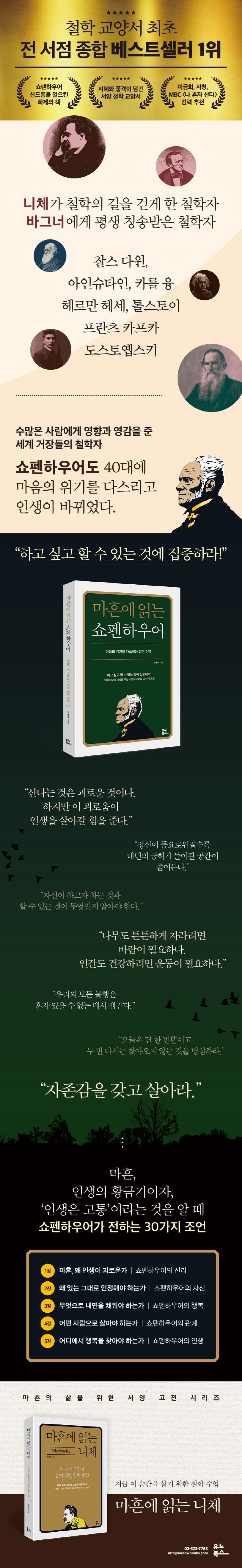 마흔이 되면 삶의 민낯이 보이기 시작합니다. 젊을 때와 달리 기대보단 체념이 많아지고, 미래보단 지금 당장의 피로가 더 크게 느껴지곤 하죠. 『마흔에 읽는 쇼펜하우어』는 인생의 고비에서 다시 삶을 바라보는 시선을 비관주의 철학자 쇼펜하우어의 사유로 안내합니다. 철학은 어렵지 않습니다. 오히려 고통을 가장 먼저 인정하고 그 속에서 삶을 덜 괴롭게 사는 법을 알려주는 가장 현실적인 언어일 수 있습니다.